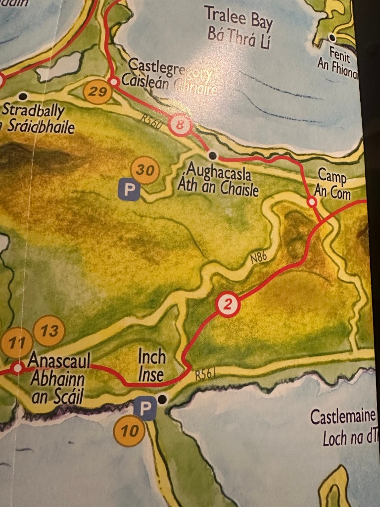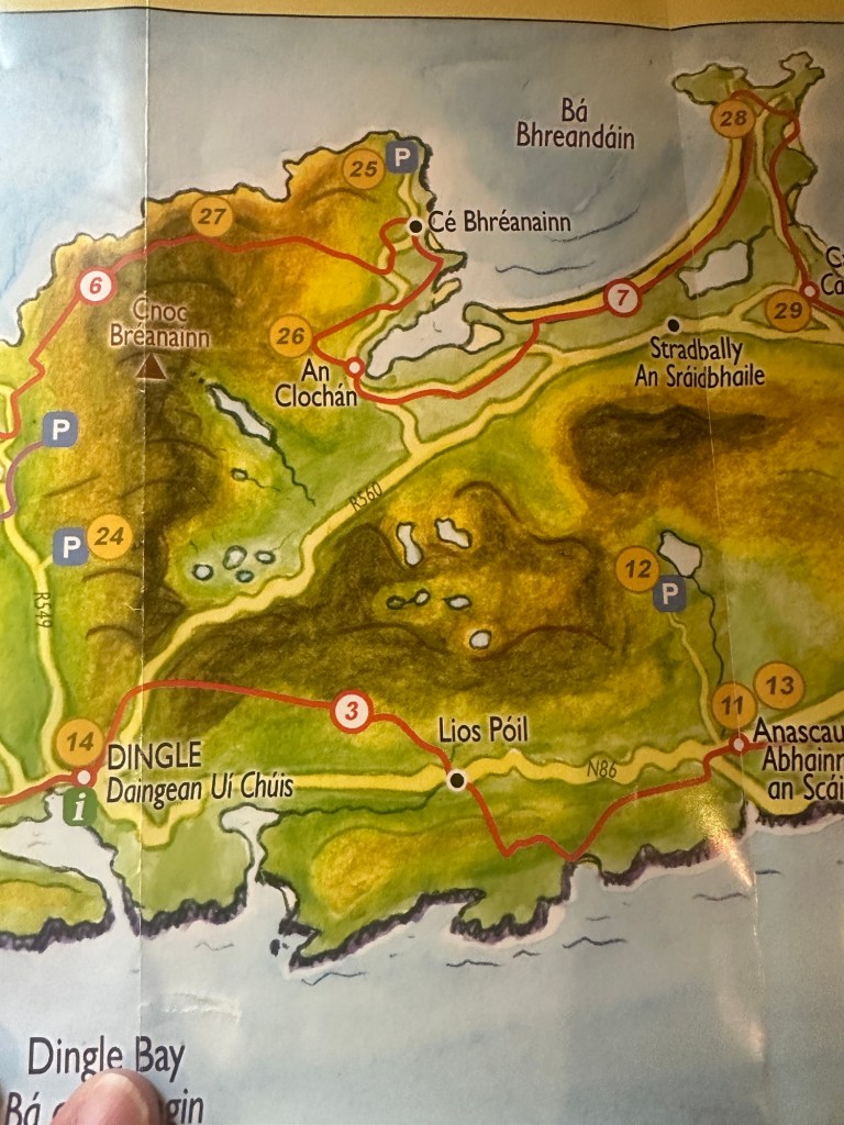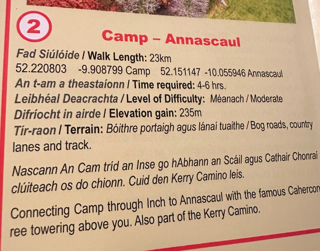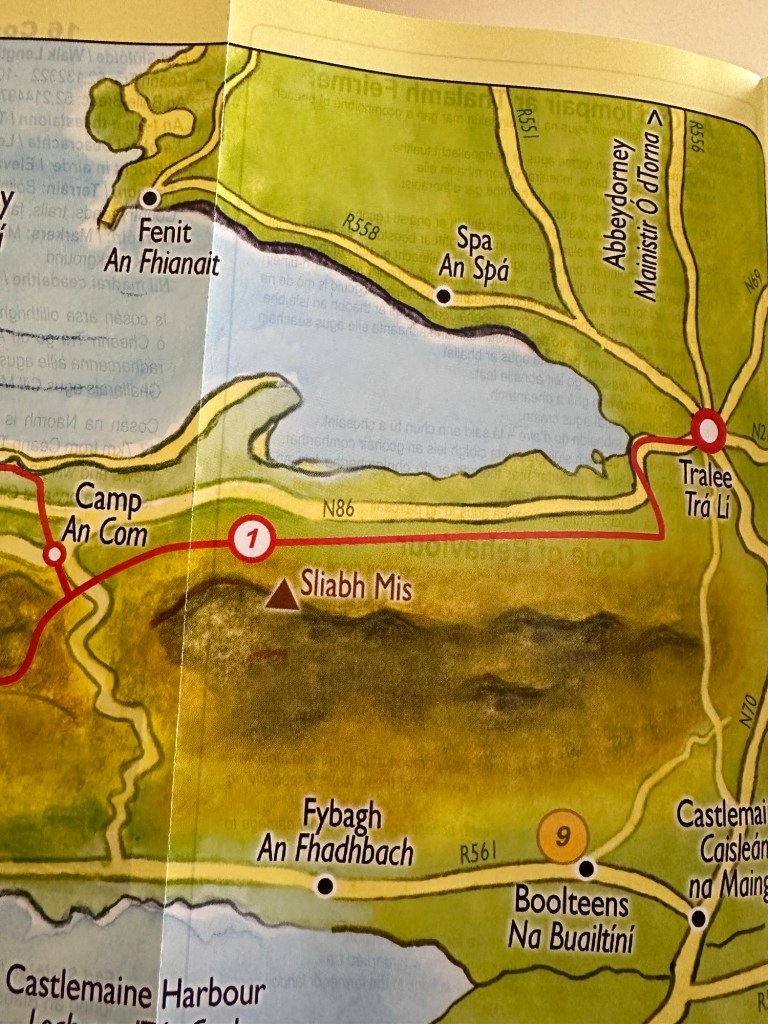 23 km inland across the Dingle Peninsula. Sunshine all the way! Easier than first day for us. Staying at B&B in Camp!