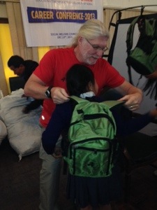 ENG hosted the first career conference today and presented scholarships to the girls… Each was presented with a backpack, school supplies, and a coat . The children are so beautiful and smart and were SO excited. The smiles of the girls are so infectious and they love to talk and giggle even when the language is difficult. We found plenty in common— families , school, I played games with a group of small children outside… A form of duck- duck- goose… And then we had dinner with a group that taught us a card game with lots of laughter ! Some girls had left their village for the very first time to be here. It was a day I can’t quite put into words…. Overwhelming in the most wonderful way! We start visiting schools tomorrow…,,
