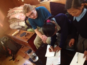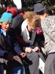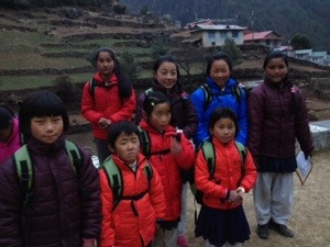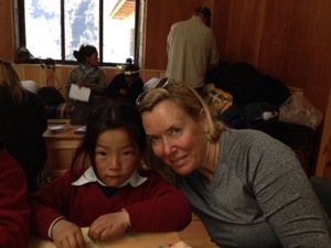 This morning was hard because part of our team was headed home. We have gotten very close as we share the experience of supporting our girls. We left Nima’s headed for Monju. The trek was hard but the company amazing! We had lunch and headed to the school above the lodge. This would be our last school visit. This school appeared to be the smallest and the poorest yet… It was also the one with the most excitement and celebration. There was a ceremony with distributing of scholarships, traditional dances… One by a young woman that walked four hours to be present . … Amazing. We all danced with the girls and then the older girls joined us at the lodge to write letters to send back with us. We sat outside in the sunshine as the girls read and wrote letters and shared information about their lives… Priceless.