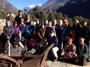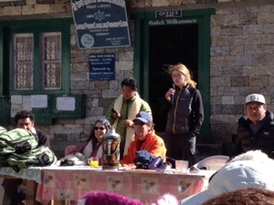 Today a few of us woke up early to hike to the peak before the girls arrived at the lodge from Ghat and also from the hilltop School. It was such a beautiful hike… The air is very, very thin and the hike quite strenuous but so worth it! When we returned the girls were arriving . The afternoon was spent mentoring, sharing, painting fingernails, taking Polaroids, singing and … A scholarship ceremony for the hilltop girls, best moment of the day was when I found Mingma! She has grown and is thriving ! Amazing! The Sherpas worked all day to prepare a New Years feast nepali style… Momos bread, pumpkin soup, and curried vegetables and Dahl baht with rice. The Sherpas were so warm and generous. They shared traditional Sherpa songs and chants and dance… Even taught Bryce! Then the party continued until midnight! Happy new year everyone!