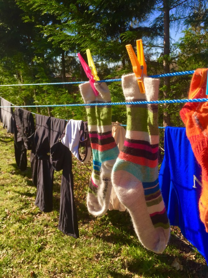 Wash day Posted on April 7, 2015 by Patrice after washing stinky clothes in the shower… They are drying in the sunshine!!! Share this: Click to share on X (Opens in new window) X Click to share on Facebook (Opens in new window) Facebook Like Loading...