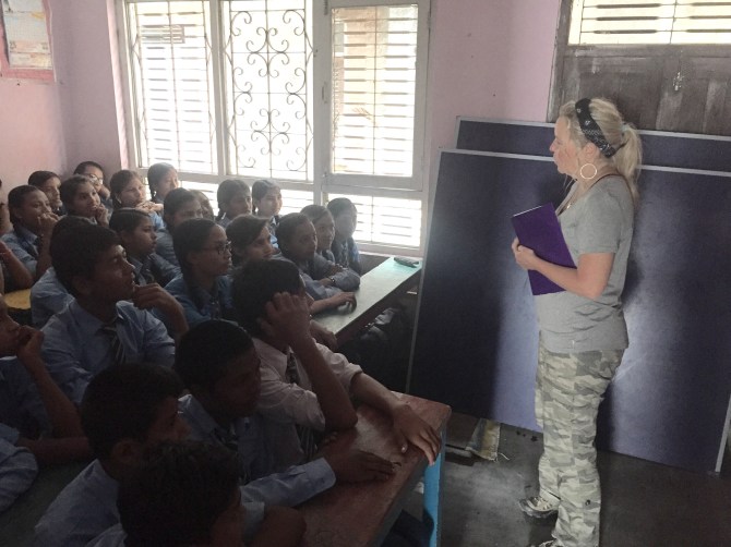 The weather was too dangerous to get into Lukla so we wound up in Baktipur. This is one of the harder hit areas. We distributed supplies and Held small group sessions with the teachers and children. It is almost unbearable at times to see the fear and anxiety in their eyes as we talk. This group had a harder time communicating and it broke my heart-sometimes lots of words aren’t needed ….