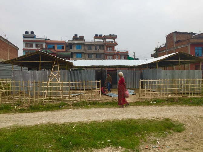The school is only using minimal spaces and only on the first floors because they want to be able to get the children out quickly if they need to. The buildings are not safe. The principle is constructing a structure of aluminum sheeting and bamboo for the tiniest students because the teachers can’t move them quickly from the larger structures.
