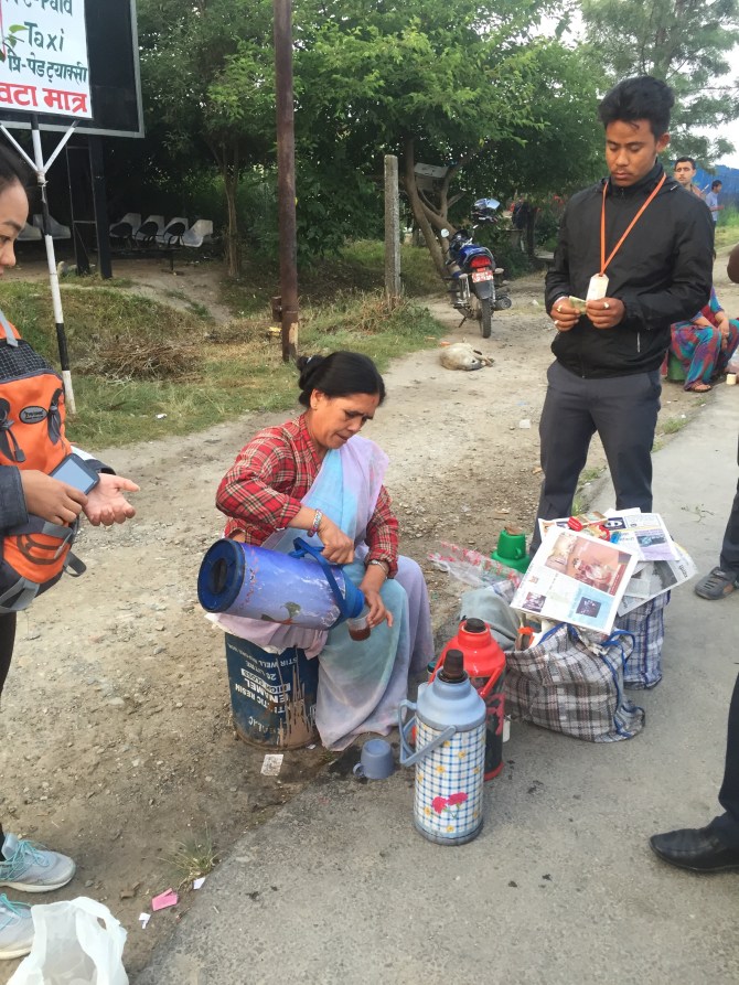 …And Again! Posted on June 5, 2015 by Patrice still at airport “the runway is broken, mem” due to a large cargo plane leaving. Our supplies got out and made it…. Our turn soon… I was interviewed by the Nepali News while waiting. Drinking tea from airport concession…π Share this: Click to share on X (Opens in new window) X Click to share on Facebook (Opens in new window) Facebook Like Loading...
