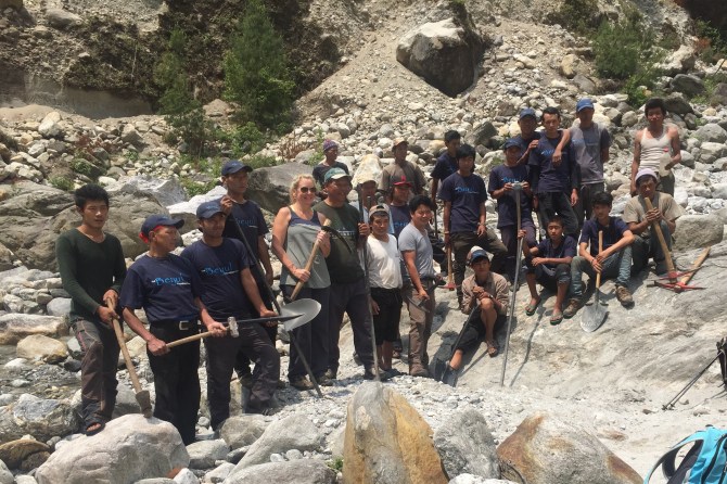 Nima is heading a project to rebuild a trail from Chuserma to Monju to allow access of supplies and safe passage. I am so honored that Bryce, Mike and I can help with this project… It wll help so many people. All the work is done by hand by local men… Amazing