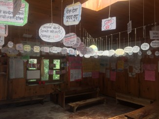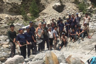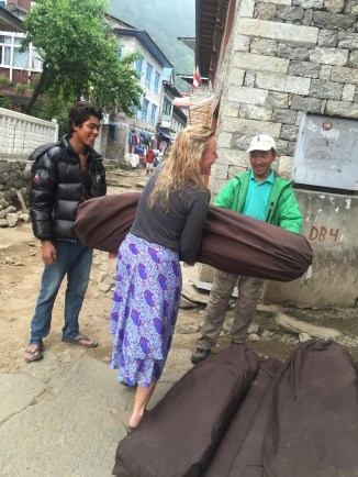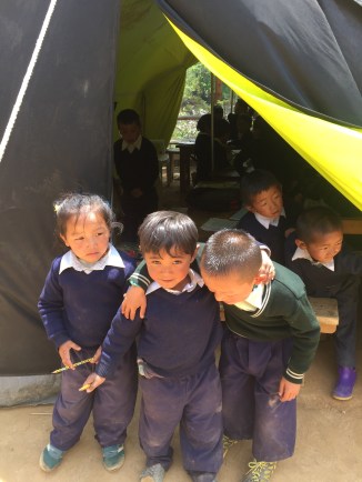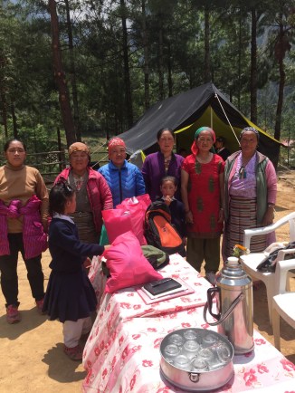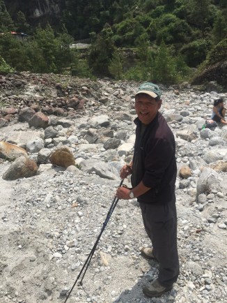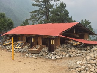 there is major damage around our dear friend, Nima”s, beautiful Beyul from the second large earthquake. Major landslides with no safe passage. The picturesque school sitting on the mountain above him is completely destroyed and so sad to see it this way. The children are coming for class but parents are very nervous …. The walk is treacherous for them in places. As we crossed the last landslide area a large rock fell from hundreds of feet above and bounced between Pasang and I… It was very loud..,who knew I could run so quickly?