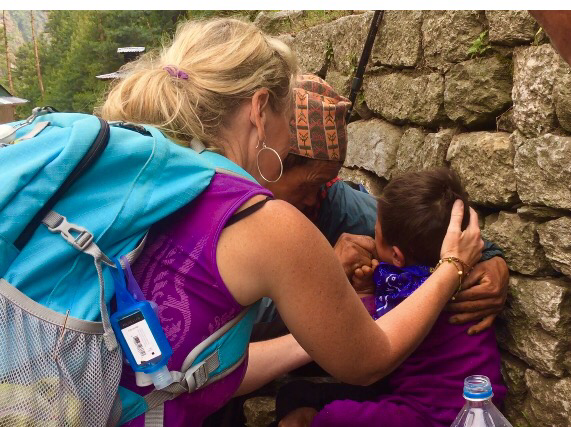 as we left Monju climbing to Nimas home, Beyul, we passed a father with a sweet angel running very high fever. The baby had been burned. Badly and was infected-just tore my heat out to see one so little and innocent in such pain. We did all we could and sent medicine we had…. I was also very touched by the care and gentleness shown by the daddy and also the gentleness of our team in caring,I’ve never felt more helpless. Life is just so hard for some.