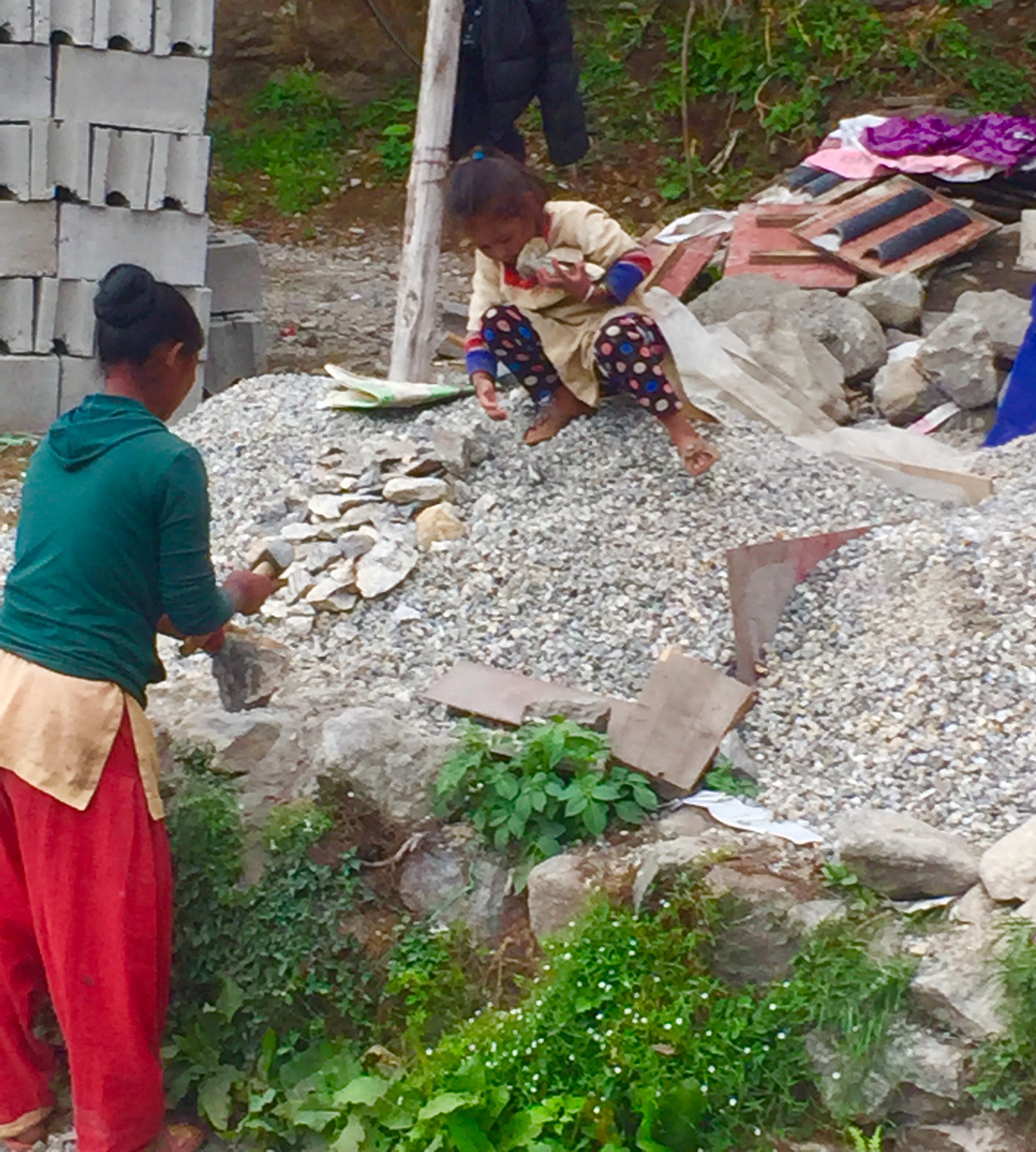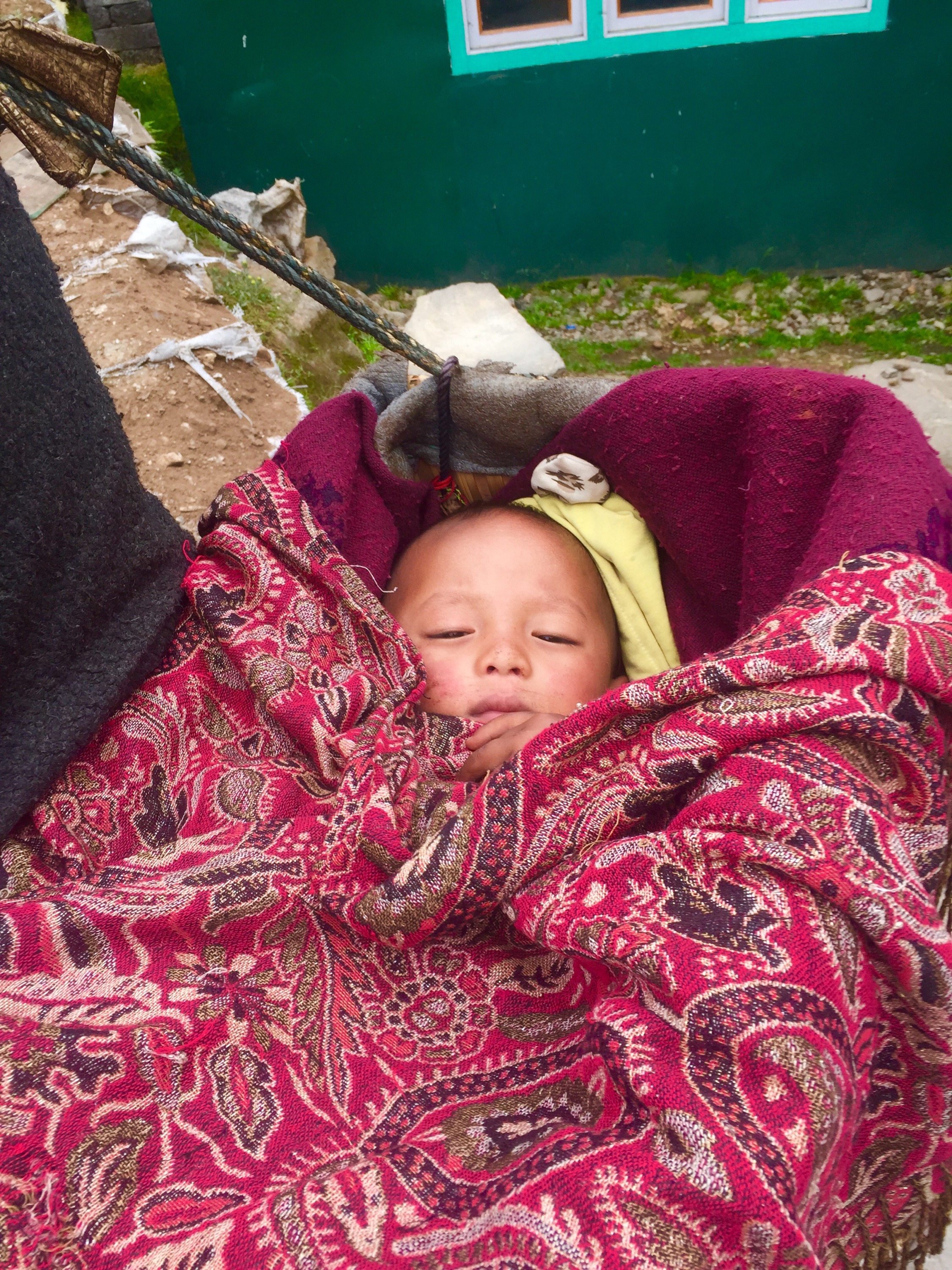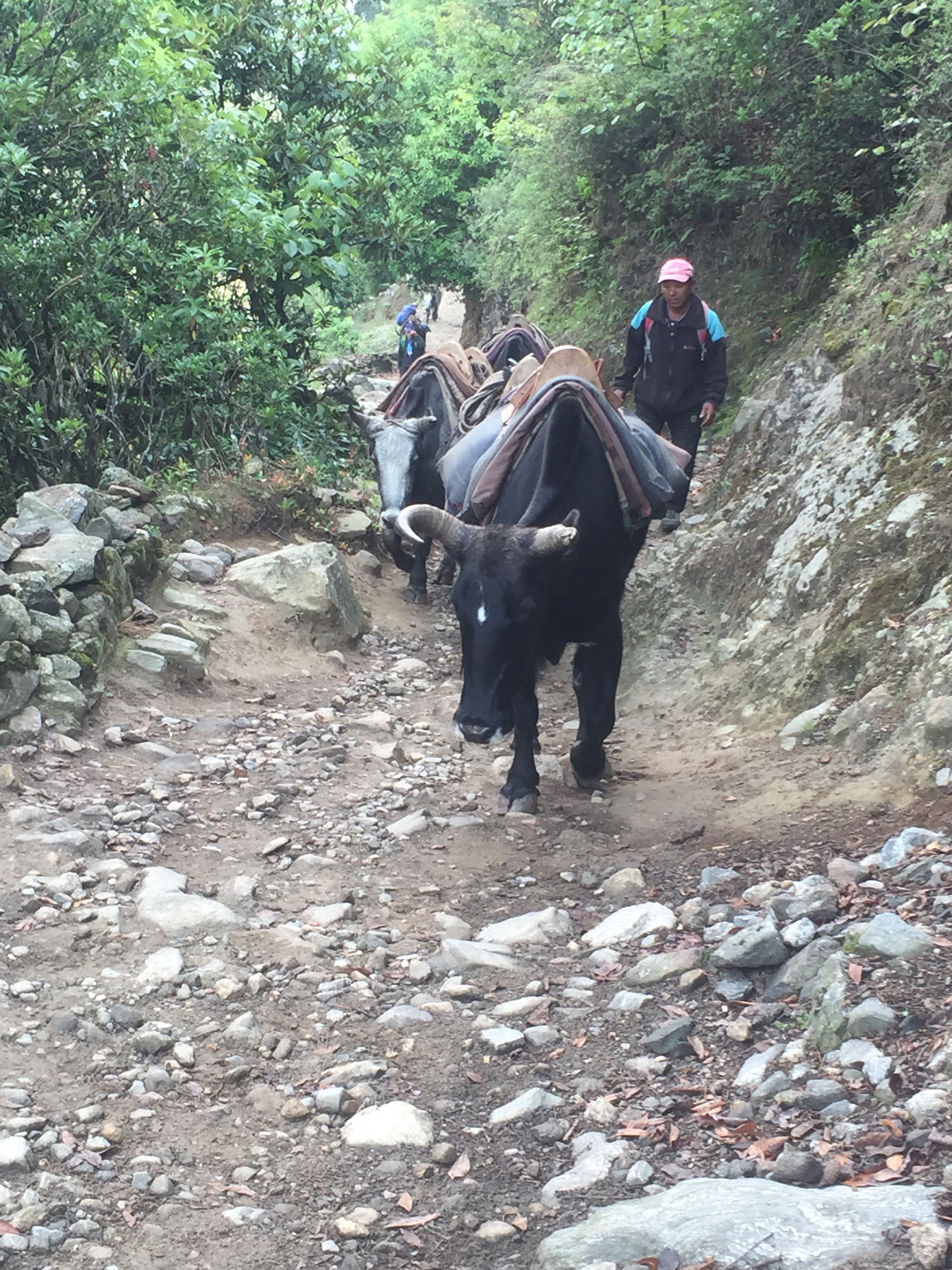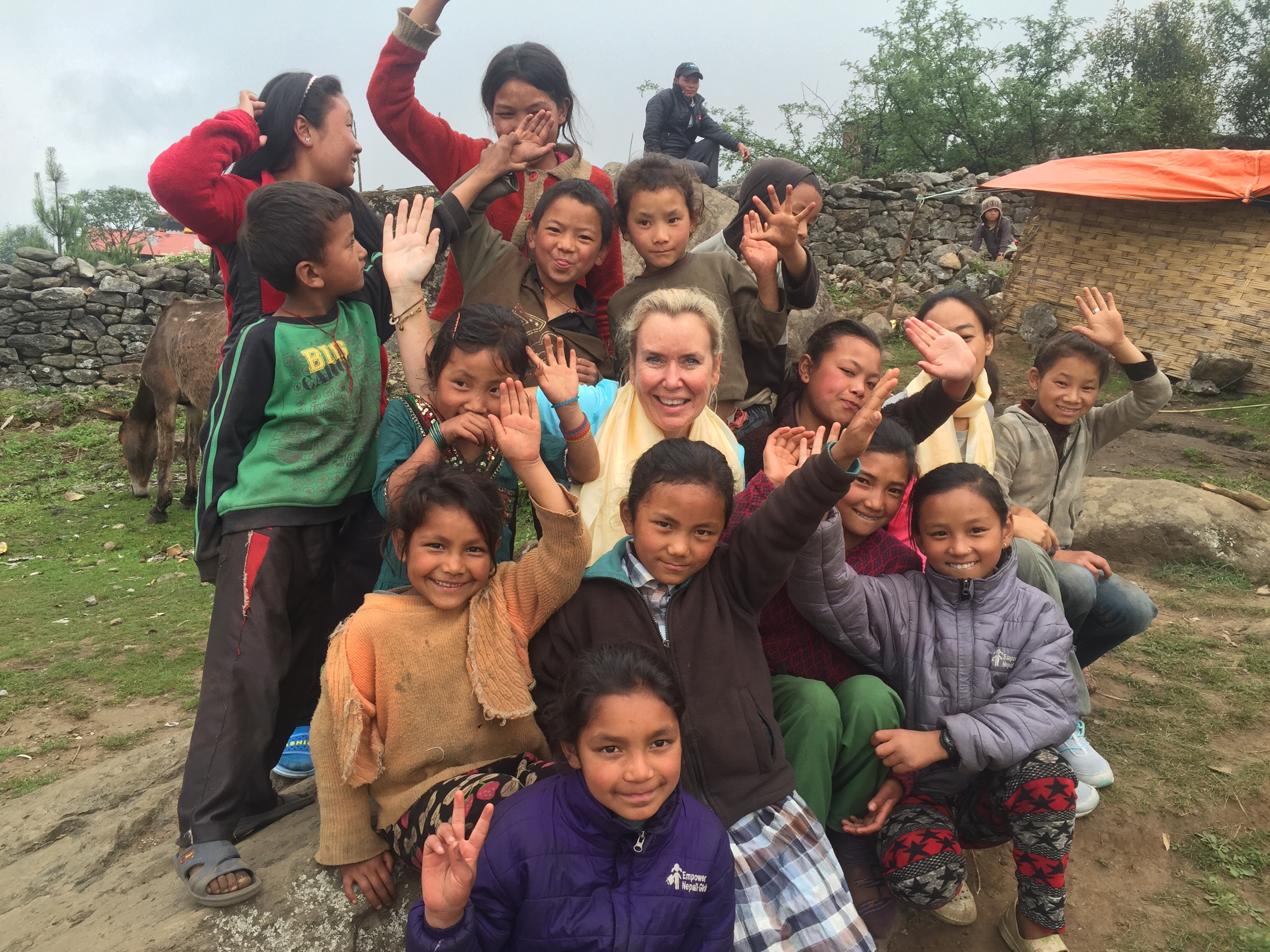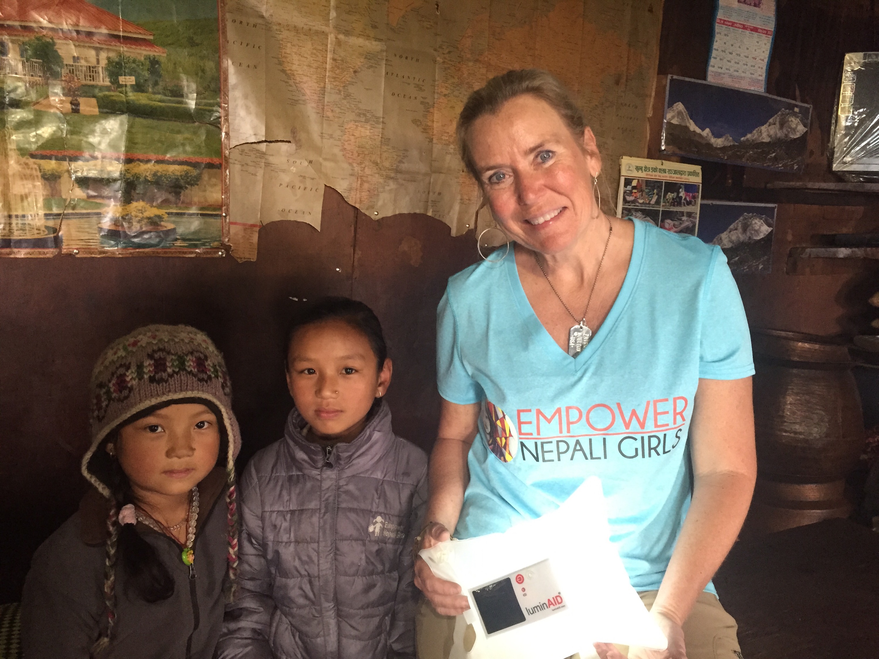 We left Lukla and began to trek. After climbing for awhile we rounded a curve in the trail and there, above us stood out sweet girls from the Ghat School waiting to walk with us! I was so happy to see their faces I could have cried! They have grown so much! We had a wonderful visit with girls and parents as we distributed supplies, lights, hygiene kits, and tarps.