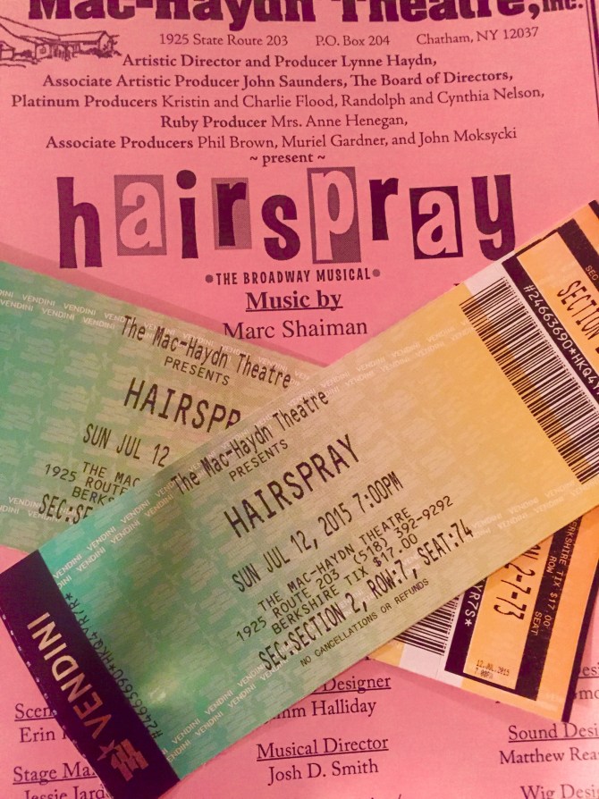 made it to the Bershires where we will be for about a month. We love the lake cottage and went to tour the area and the campus last night. Spent a great morning together and then dropped Bryce at his writer’s workshop. Mike and I stopped for a coffee and then caught “”Hairspray” at a theater in New York..