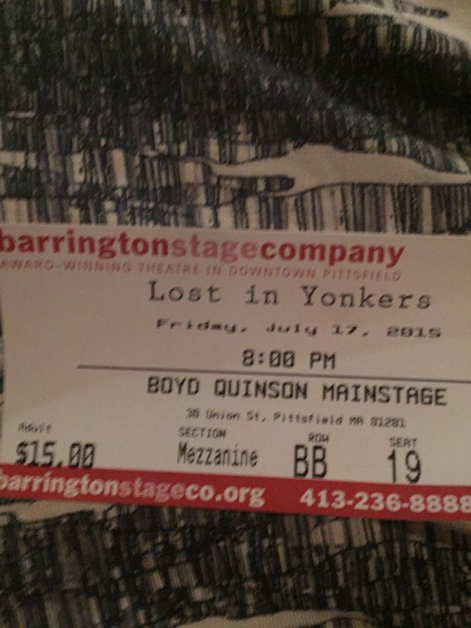 Pittsfield Mass Posted on July 18, 2015 by Patrice spent the day just hanging out with Judy & Mike in the mountains, stopping at small shops and exploring. Came home for a great meal on our porch ( thanks Mike!) and then went to the theater to see Neil Simon’s play “Lost In Yonkers” Share this: Click to share on X (Opens in new window) X Click to share on Facebook (Opens in new window) Facebook Like Loading...