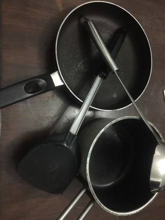 Careful thought of preparation of food with only one small pot and one small pan. Deciding how to use valued and limited foods.