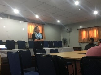 So I really didn’t realize how difficult preparing lecture materials would be. Trying to develop a PowerPoint lecture with little electricity and virtually no internet connection is interesting. In order to complete the task I walked up the lane about 1:30 this am to a main building and stood in the middle of the lobby with my iPad in order to connect and work. If I sat down/no connection! Too funny! Mission accomplished!!!!! I even had a Diet Coke to celebrate- they are like gold here, about $4