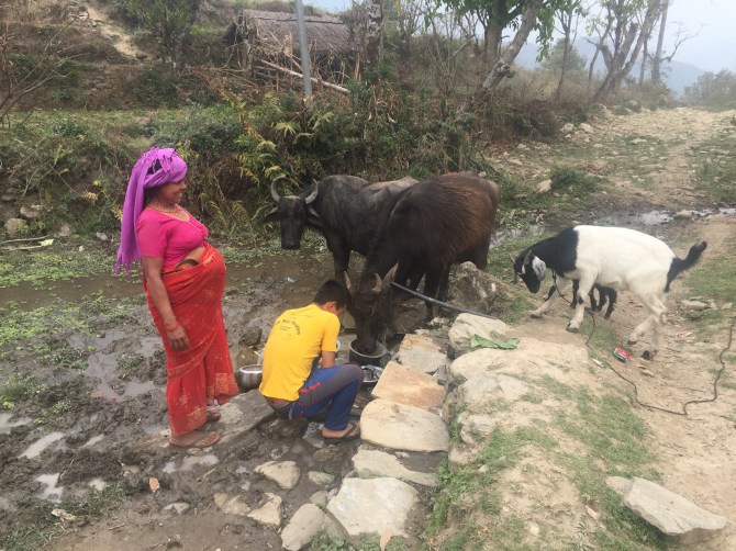 Spending time in a remote village is like living in a fish bowl. We were the first Caucasian people to visit there in years and the very first for many of the villagers to see. Therefore, we were a novelty and our every move was watched by many eyes, lots of talk about us and curiosity and zero privacy and I really mean zero. It was a bit disconcerting but at the same time very endearing. The entire village gathered for each interaction or school meeting or home visit. Our “camp” was located in the water buffalo field ( yes you read correctly) next to the spring that provides water to the village and a bathing spot for the water buffalo. We even unintentionally shared a cooking pan with them I guess you don’t say no to something that big!