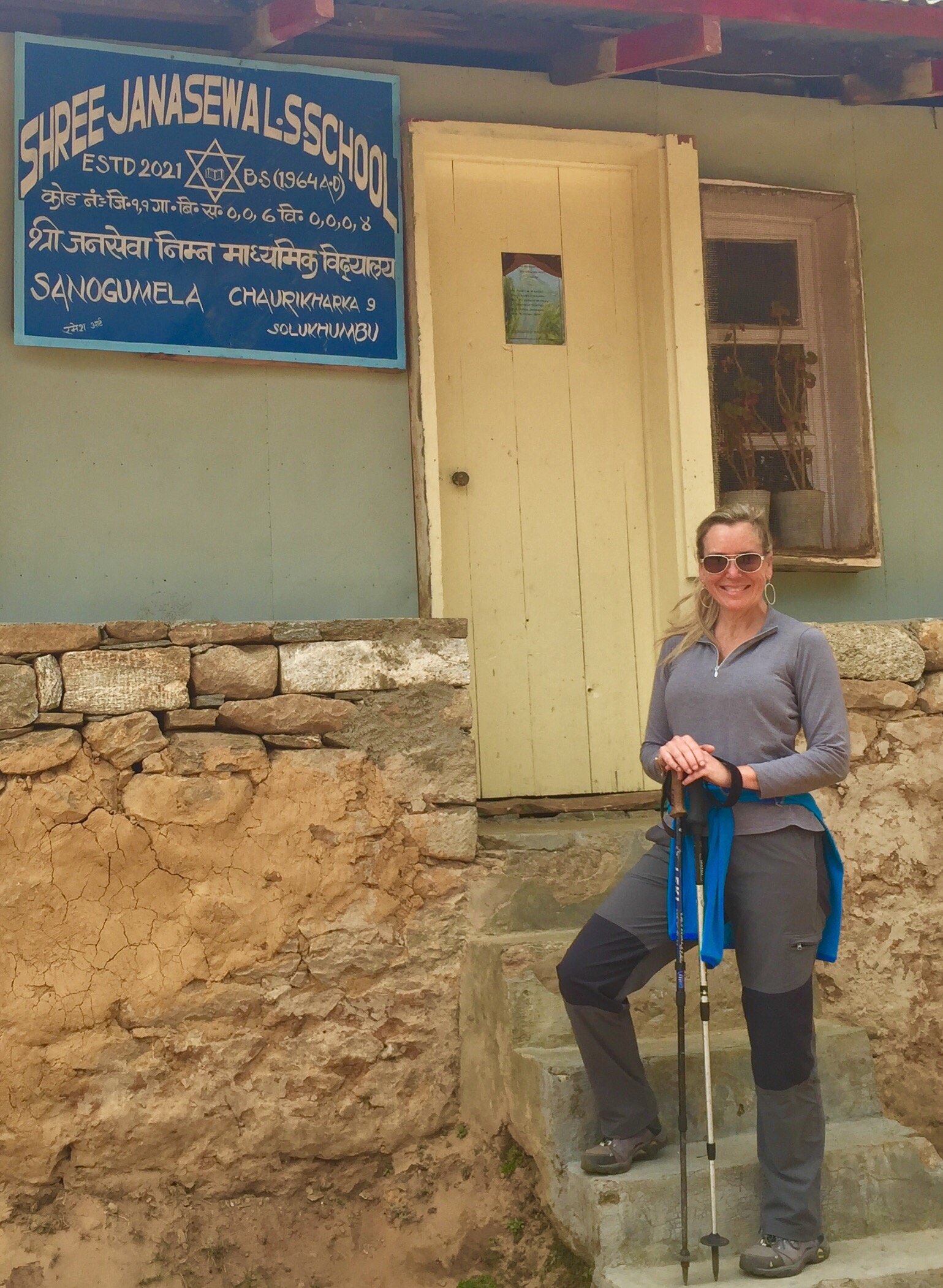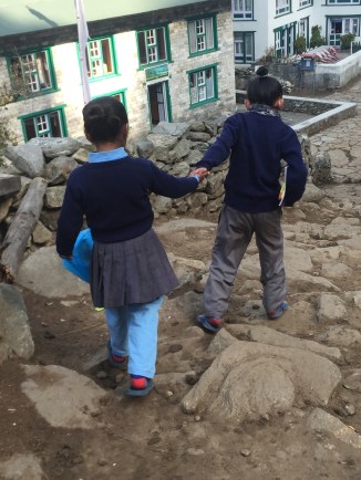 Oh how I love seeing these girls grow and thrive. Our Mingma is here,and Sundari that Bryce met on the trail and gave his scarf two years ago, and Precious tiny angina with her adorable ponytails. How could anyone not love them. We had a great time with hugs and catching up a bit. The girls walked me to the school on top of the hill for a visit. The health center we brought supplies for and set up after the earthquake is still in use… Kudos to all who helped make this possible. Later that night the community school Committe, principal, and a few parents showed up where I was staying to plan for the school project. ENG will be partnering with the community to build a library… So so exciting. Getting the materials here will be the challenge! I know we can do it!