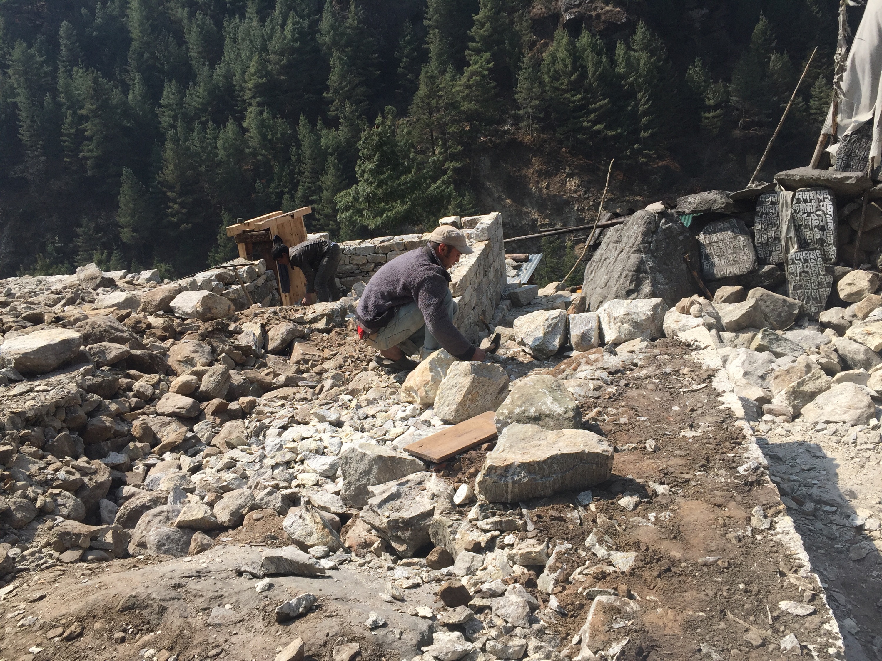 I didn’t realize how badly I needed to be here again until I began the walk from Ghat to Monju. SO many moment of memories rising up of my time here right after the earthquake. Families in crisis, medical emergencies, a dying baby, crushed and burned homes, people in tents in the cold pouring rain. But now so many things put back together, trails across the landslides we threaded, and boulders being pounded into perfect bricks. Re-building, resilient, strong, joy, healing. I think I needed to feel this. I’m very thankful and so inspired.