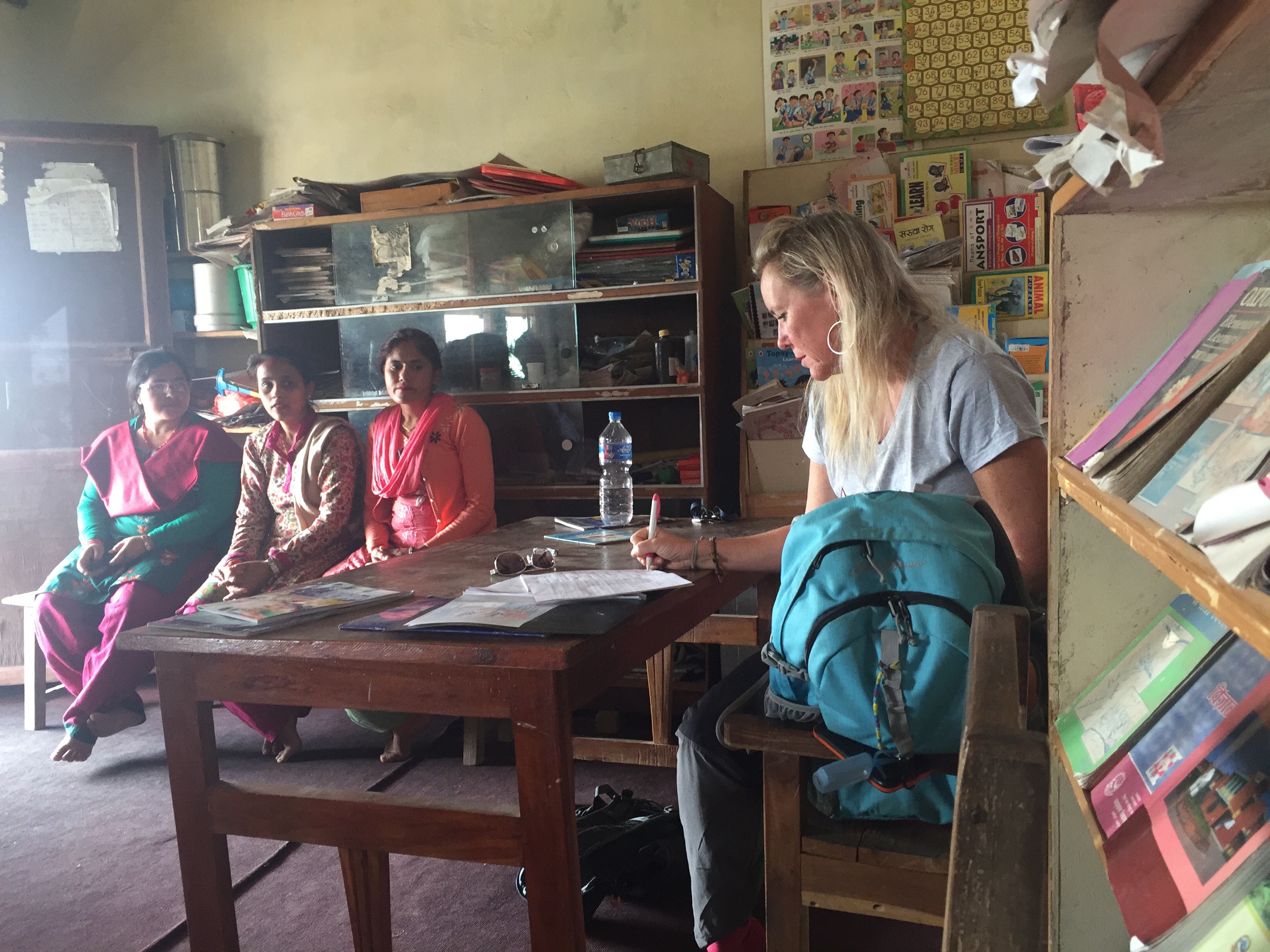 Today we rode to a very remote and very poor area of Chitwan to Sharanpur school. We have 10 scholarship girls from this area. There are 175 students here total, nursery to 7th grade. The school has no electricity, only the one computer ENG gave them, and they reported that many kids don’t get lunch each day due to poverty. They have no library. Room to Read came a long time ago but the materials are torn up and the room was a disaster. We told them if they clean out the space we will work to provide the resources they asked for, a speaker system, books ( emphasis on science and reading for children) and musical instruments to show the children. The village women were very welcoming and curious about my life and the children were curious and diligent in working! This school is one of the few that has NOT been adopted yet… Please contact me if you would like to help!!! We need a sponsor!