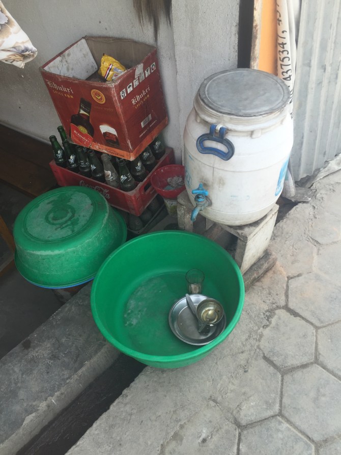 Dirty dishes, there are only minimum to use and they are put in the bin on the street, same bin to wash clothes…
