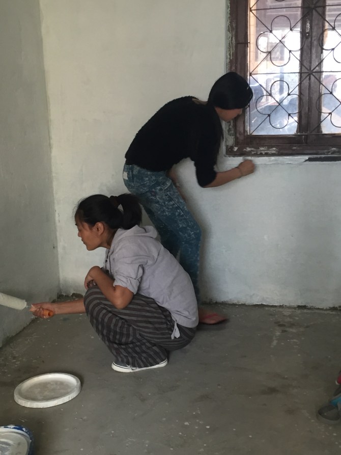 Paint Party Posted on April 18, 2016 by Patrice Began painting the base coat of Rising Rays new SAFE LEARNING SPACE Computer Lab/ Science rooms today with the best volunteer team ever! We worked, drank a little tea, and laughter a LOT! Share this: Click to share on X (Opens in new window) X Click to share on Facebook (Opens in new window) Facebook Like Loading...