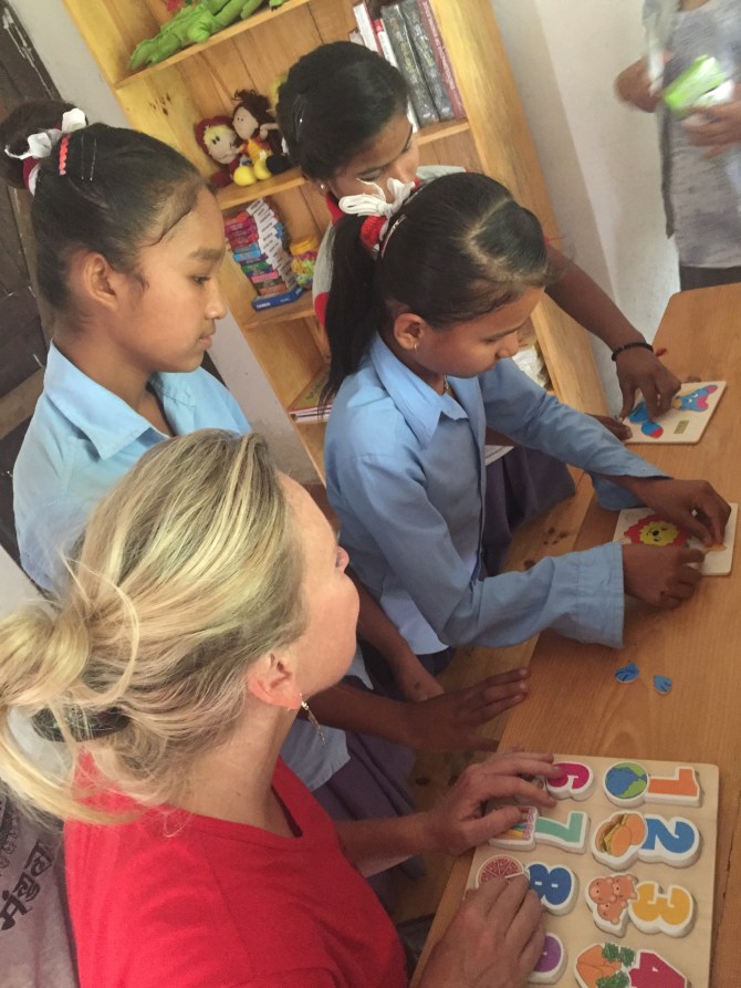 ENG scholarship girls helping to unpack. ithey are the reason these specific schools were chosen., they are so proud!