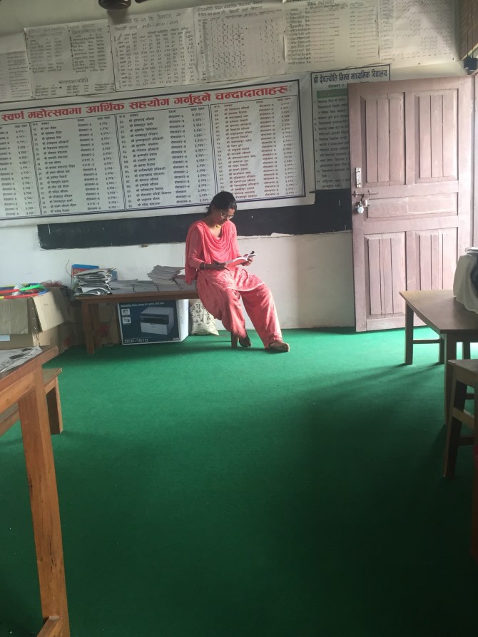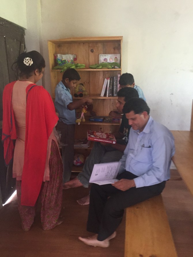 I spotted this teacher in the next room reading one of the new teacher resource books. The next photos are of teacher and students beginning to settle down and read. The principal is such a kind man and was so very grateful!