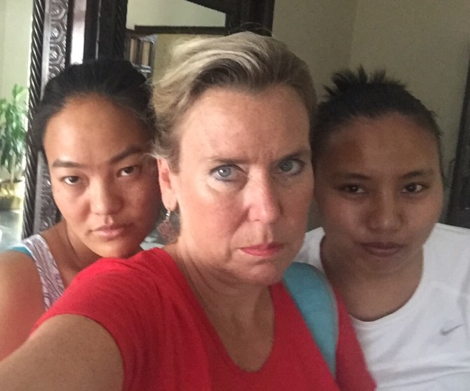 This is the look on our faces when we realized that the materials for our playroom had not been sent. We knew we were down 1 but not 2! So we made calls and went into action. We jumped in our trusty cargo van to take us to shops to find anything that would work for today. And Pasang ( the Calvary) went into action in Kathmandu to get things here for tomorrow. TEAMWORK