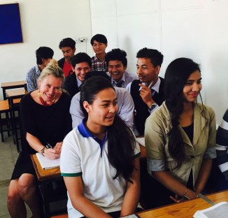 Sometimes the best moments happen when you are least expecting them if you just stay open. At the end of a lovely but long day, as it neared dark I stopped into Himilayan coffeehouse for a cup of coffee before heading home. I found a quiet corner and placed my order. As I waited a lovely Asian woman came and sat across from me and as I curled my legs under me to get comfortable she smiled and did the same-the beginnings of a friendship. Soon her friend came and joined us and began to chat and translate. They are from China, here in Nepal working with a school. We were also joined by their friend and guide who is a Buddist monk. We found many things to talk about and mutual connections, decided to go to dinner together and share a very unexpected lovely evening! Meet my new friends Guo ping, Lekshay, & Caroline. Thank you for such a fun and interesting night! p.s,. I shared my first and hopefully only car accident with these guys coming home tonight, very minor and no one hurt!