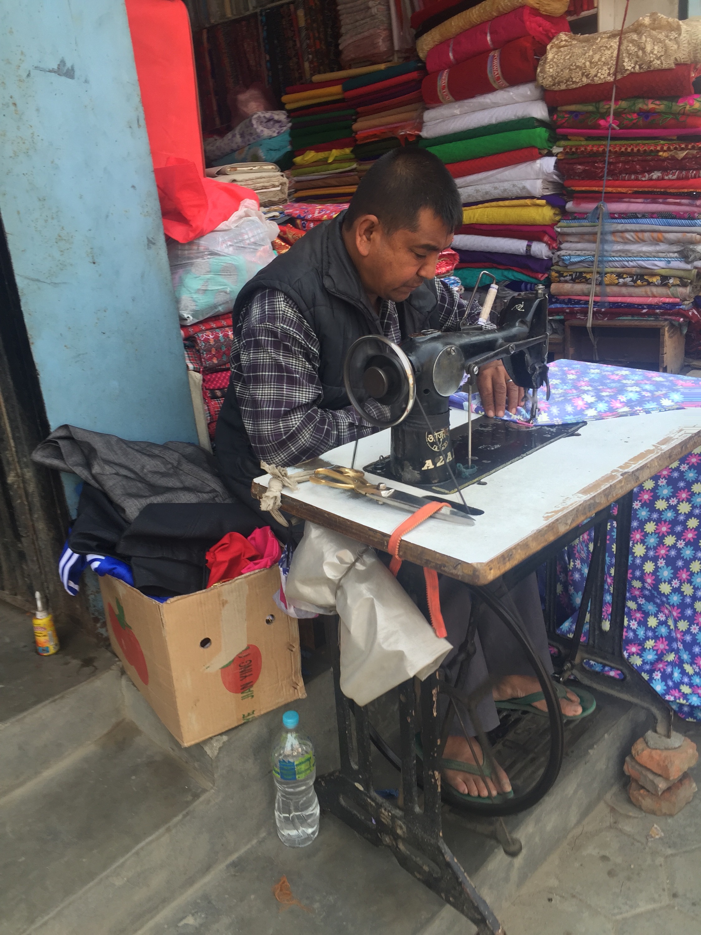 Started the day with university visit and then on to order flooring for the schools, finalize furniture with the builder, and finally shopping for material for throw pillows for the kid’s resource rooms. Ended the day again around 8:00 crossing Kathmandu on a scooter ( me, Babi, two backpacks, and two very large bags of fabric) to try and make it back to meet with the group actually sewing the pillows. My daddy will be proud of my measuring and calculating for flooring, lumber, furniture, etc.