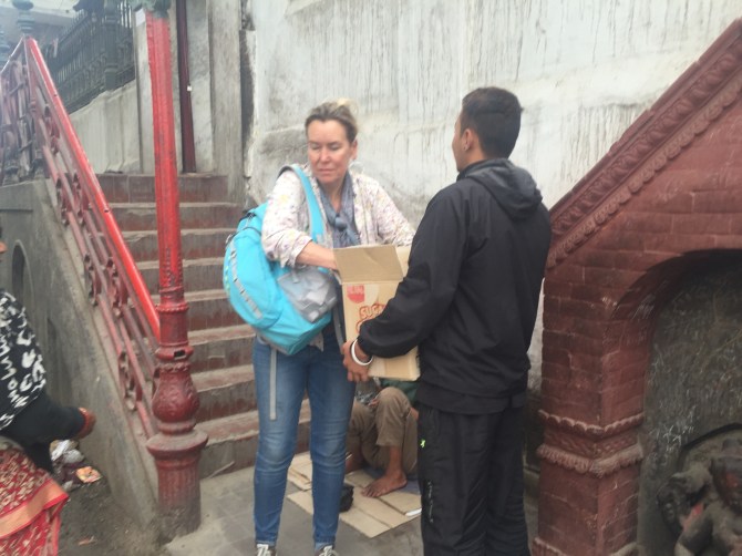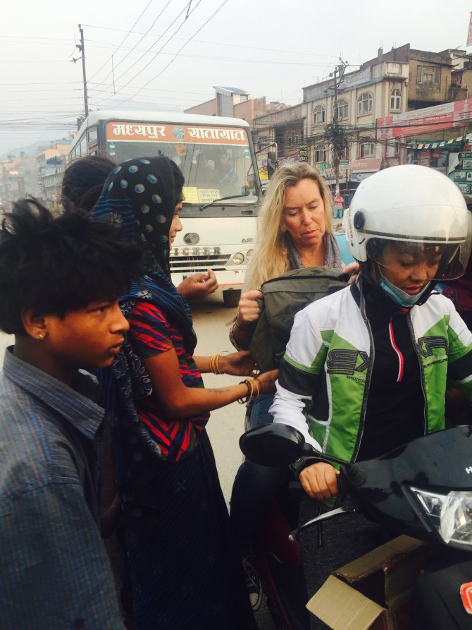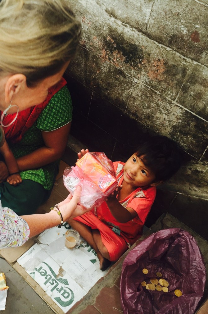 Thanks to Babita,Sameer, and Suman for making my wish for my last morning here come true. I have always wanted to do something to reach out to the very poorest of Nepal. So, we bought food and made over 100 packets of noodles, crackers and juice and went on scooters to distribute to the street children living in the dirt on the sides of the roads. Pure desperation… NEVER experienced anything like this encounter. It will take a while to process this experience. My heart is so so full!!