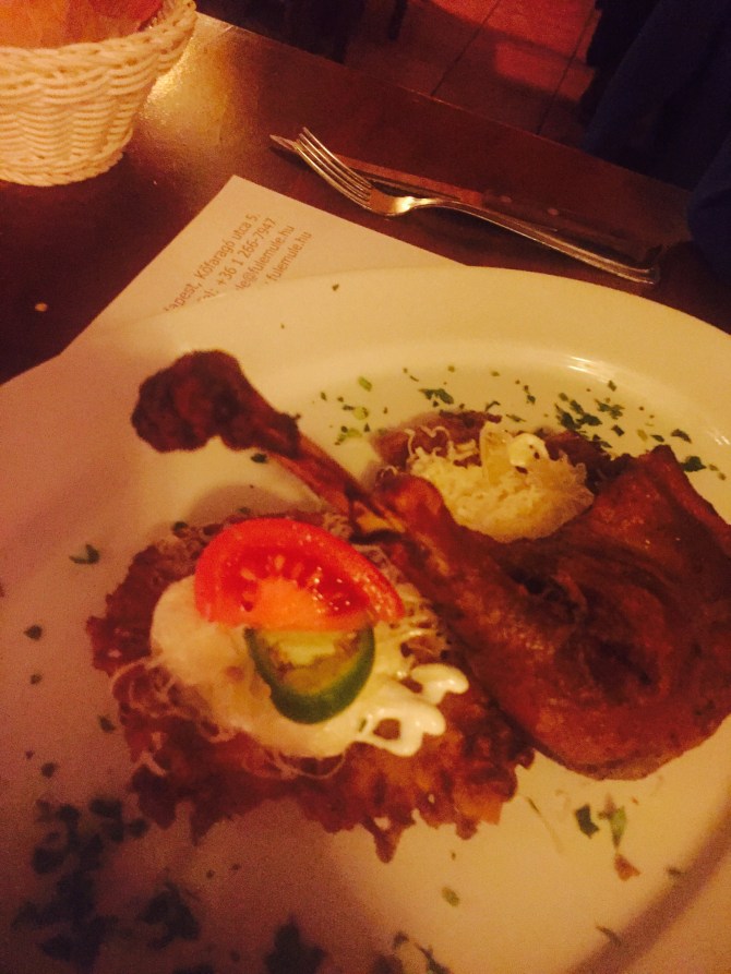 So tonight we picked FuleMule traditional Jewish Restsurant back in a small neighborhood. We had golden goose matzhoball soup, bean goulash, chohert, smoked brisket, dumplings, latkes, and roasted goose. There are so many ethnic restaurants we need more days!