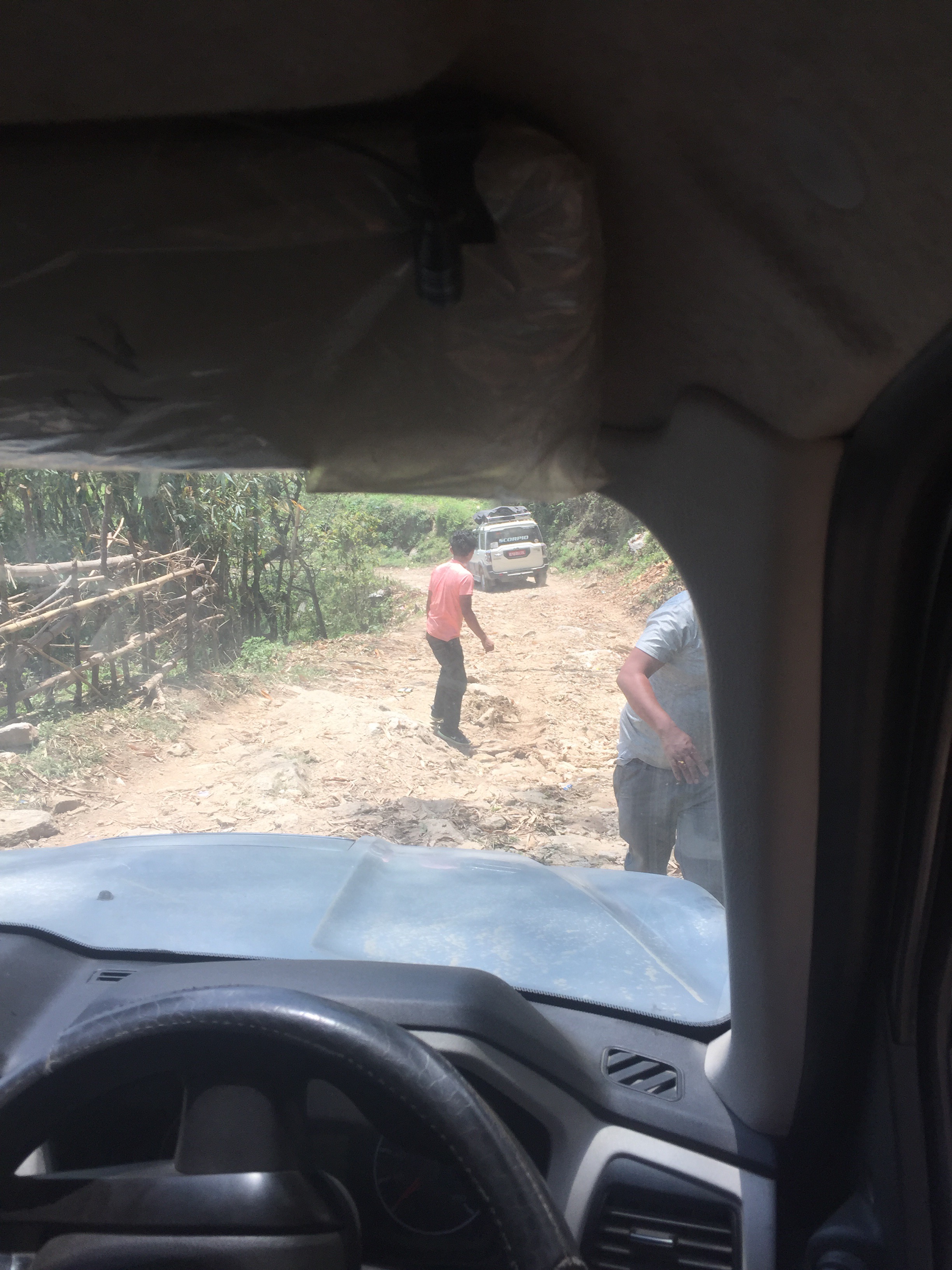 We traveled in a caravan of three keeps fully loaded with people and supplies. The road to Borang is very difficult with many stops and discussions for navigating the drive. Areas are too washed out so drivers fill holes with rock before we can continue. We are so hot and dirty and tired, but so excited to arrive.