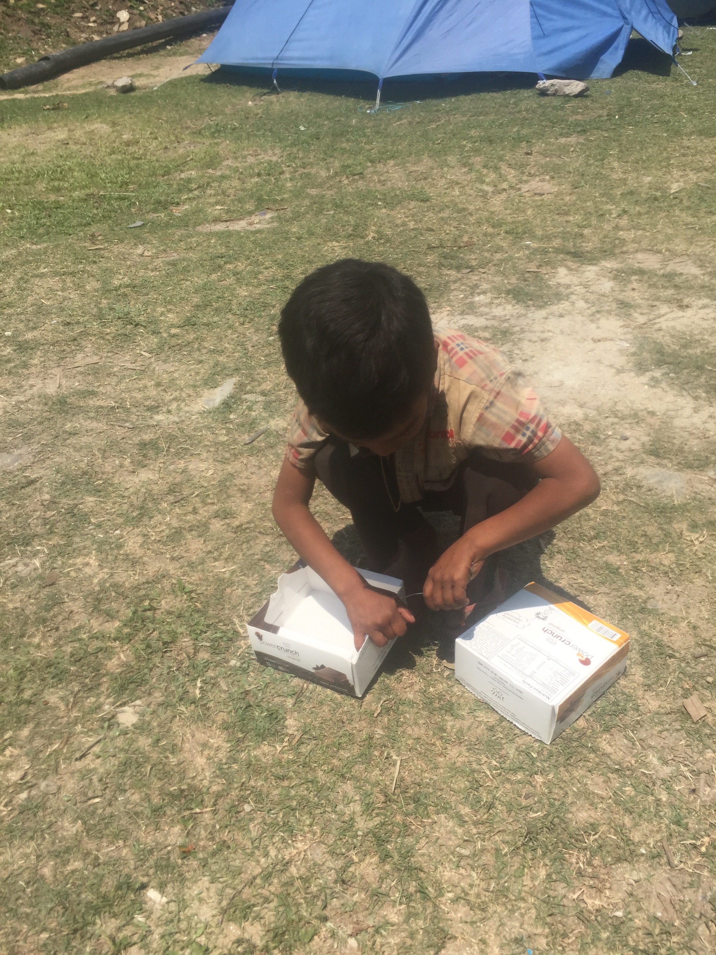 This little boy just stole our hearts. He stayed around our camp constantly with unlimited energy, curiosity, and determination. These photos show the typical “toys for a child in a village. He would sing or whistle constantly while creating things to entertain himself. Two of our cardboard boxes and a piece of wire off the ground= a truck. A bamboo stick and a broken piece of plastic= a spear. Only play through imagination. He would just wander around on his own and never wavered in his tasks as water buffalo and goats wandered through the camp. So stinking cute!