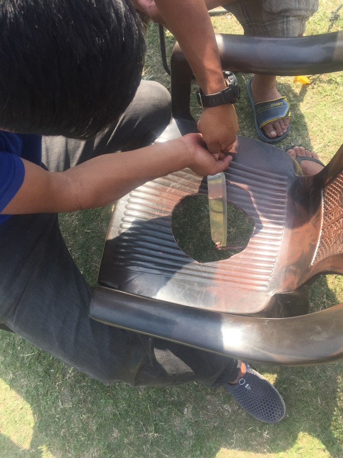True Hospitality Posted on April 29, 2017 by Patrice Villagers making us a “western” toilet seat for our toilet tent/outhouse. Creature comforts?!?!?! Share this: Click to share on X (Opens in new window) X Click to share on Facebook (Opens in new window) Facebook Like Loading...