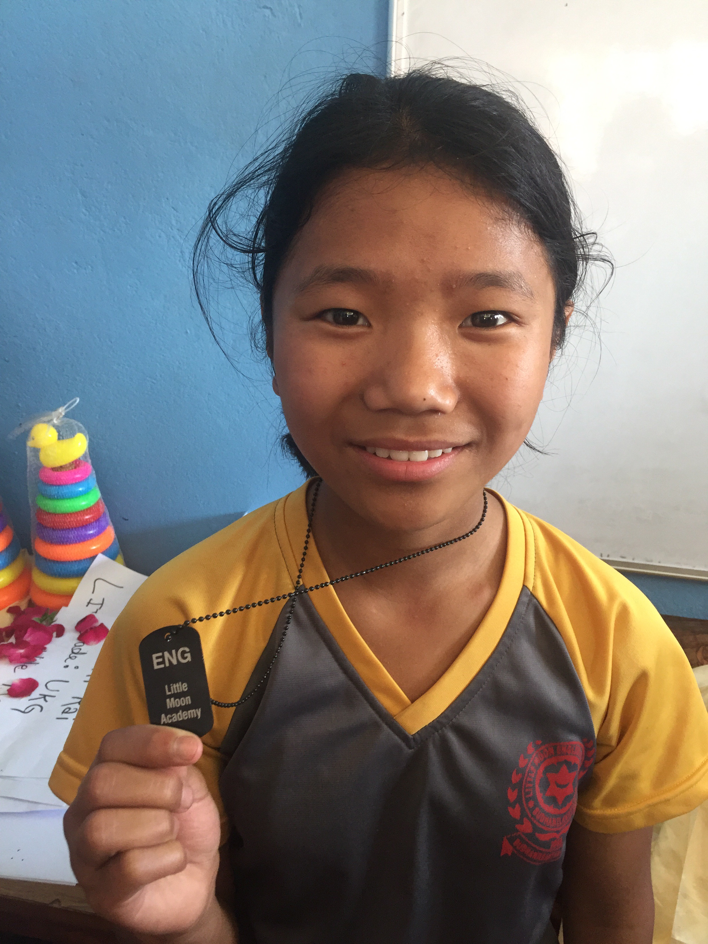 These two girls spent Christmas break sewing hair scrunchies from recycled sari material and using the proceeds from their sales to purchase I.d. Necklaces for all our ENG girls. Amazing example of girls connecting across the world. They also made enough to make an additional donation! The ENG girls LOVE their necklaces! I lam so proud of these two! Love you Sarah Wheat!!’n