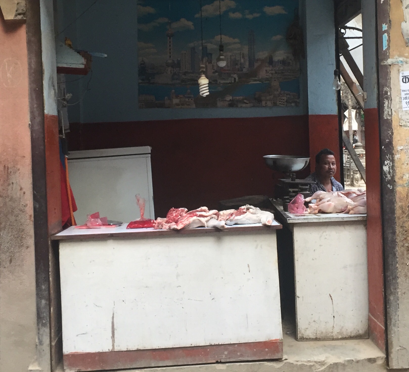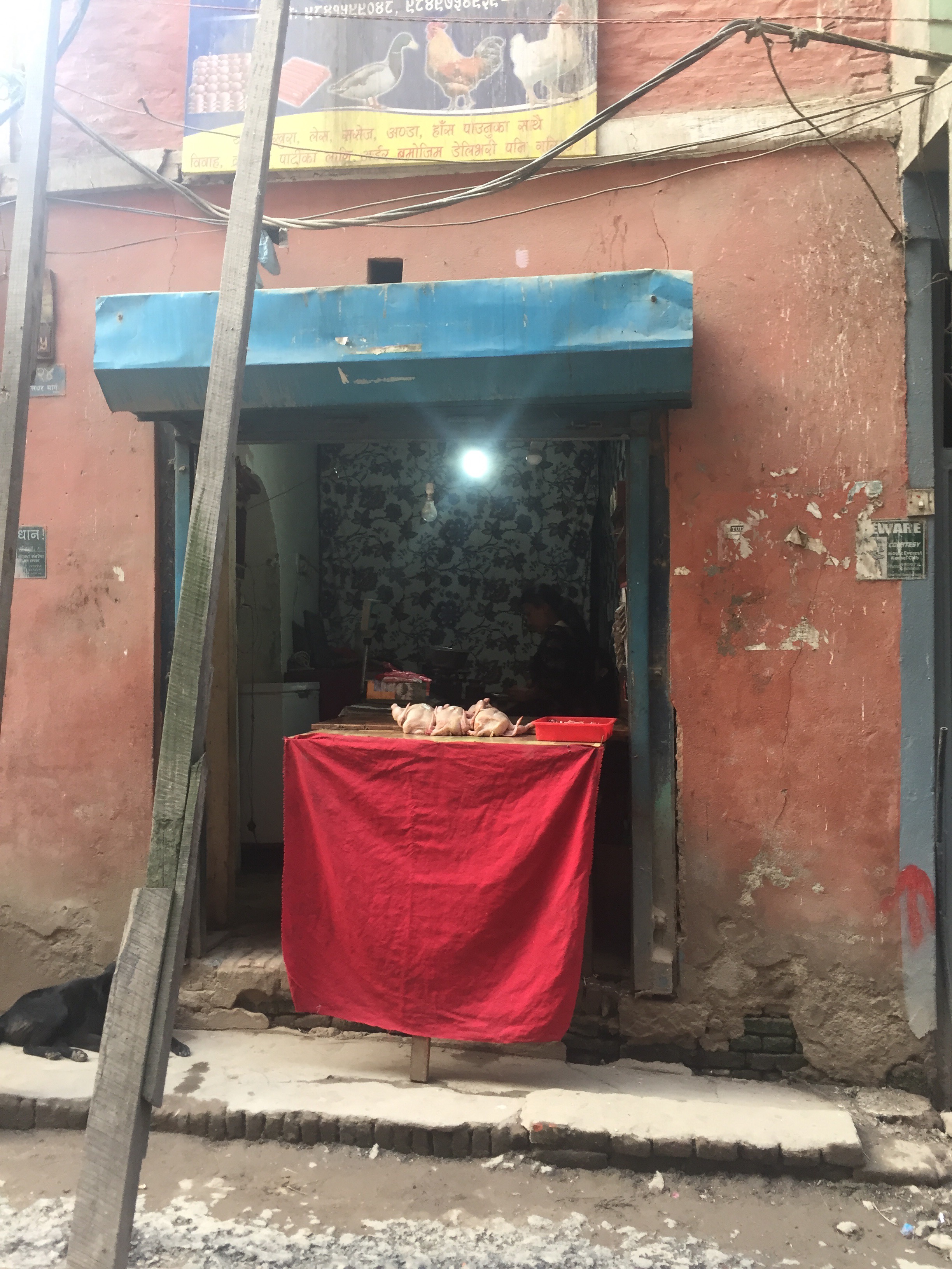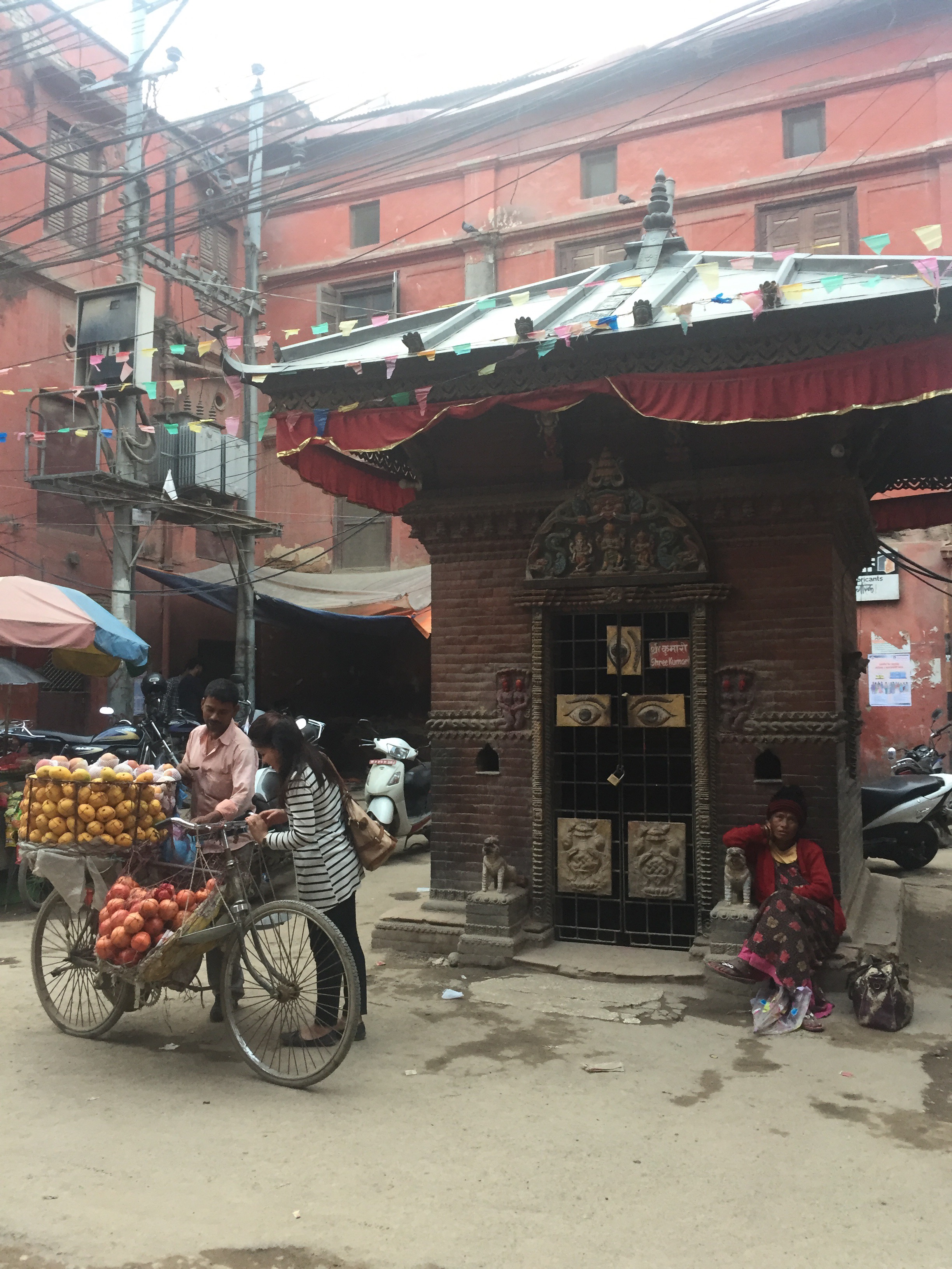 Many of the oldest buildings in Asan were destroyed completely in the earthquake. 2 years later the buildings are extremely unstable and they are propped with bamboo for support. People have no option but to go bsck in to live. Just walking through makes me think twice because the alleys are so narrow with nowhere to go. Breaks my heart.