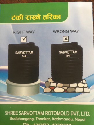 There is never a dull moment! Today started with government approvals followed by logistical coordination for team travel schedule. Then across Nepal to meet with consultants on rain water collection methods and installation. This is sometjing I know little to nothing about but I’m learning fast! I have a clue now & a supply list. Tomorrow will start finding materials pricing? Negotiating, organizing transport, etc. Nothing like jumping right in… leaps of faith! It is important in life to test your bounce, your resilience. I bounce pretty good apparently! Ok I gotta bounce on to the next thing, prep for tomorrow’s meeting with the education folks at the American Embassy!