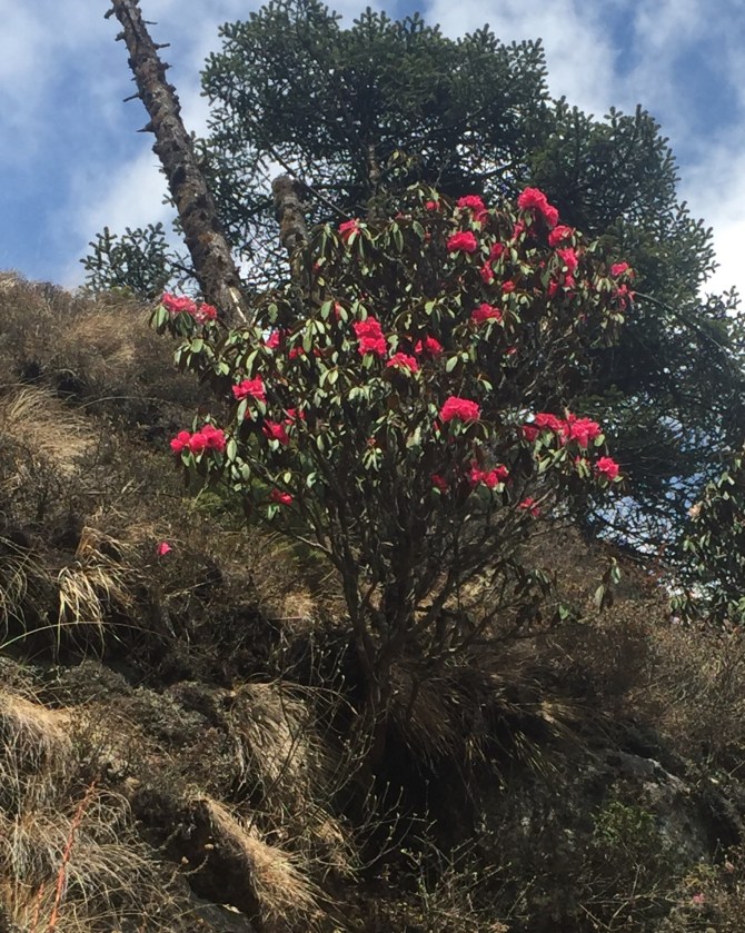 Trails in the Clouds Posted on May 19, 2017 by Patrice We are heading above Namche and the clouds are literally surrounding us and the views of the mountains and snow capped peaks are absolutely stunning. Rhododendron trees grow wild everywhere at this altitude. Share this: Click to share on X (Opens in new window) X Click to share on Facebook (Opens in new window) Facebook Like Loading...