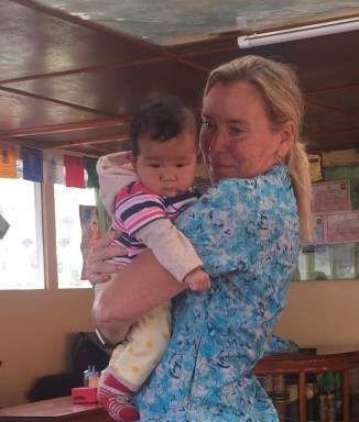 Nepali babies are carried in these homemade baskets on mamas backs by a strap across the forehead. Babies are snuggled in so sweetly to make sure they are secure.