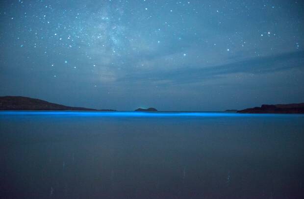 We left the shore at 10:00 tonight to night kayak in the bioluminescent waters of the Atlantic Ocean off the coast of Ireland. The conditions were perfect! Sun filled day, full moon, low winds and a temperature of about 59 degrees. It was absolutely perfect! It was like kayaking in the stars. Every time our paddles dipped into the water the bioluminescent plankton would light up like millions of tiny stars glittering beneath the waters. We stayed out for hours and felt like we wanted to stay the entire night. It is about 2:00 am and we are off the water heading for hot showers, a fire, and hot tea. Definitely a night to remember with my guys for a lifetime.