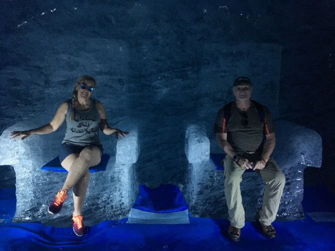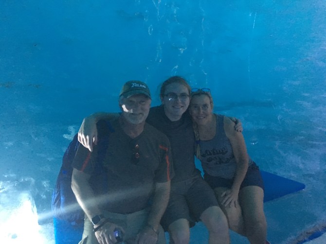 We had an incredible experience getting up the mountain and then climbing over 600 steel steps down, attached to the side of the mountain precipice, into a glacier cave. We actually went INSIDE the glacier!! It was stunningly beautiful and such a cool experience. It is hard to see the effects of global warming in action. These glaciers are disappearing .