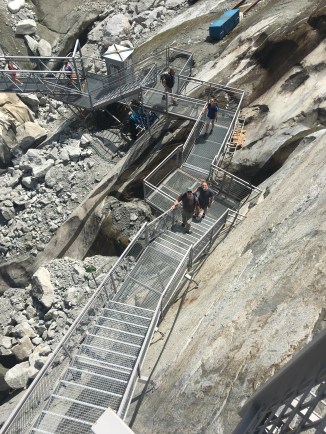 We had an incredible experience getting up the mountain and then climbing over 600 steel steps down, attached to the side of the mountain precipice, into a glacier cave. We actually went INSIDE the glacier!! It was stunningly beautiful and such a cool experience. It is hard to see the effects of global warming in action. These glaciers are disappearing .