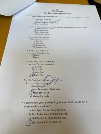 Before we begin teaching English as a second language to children we must learn some basic Thai conversation, Thai is a very difficult language. Hi is Sawad dee ka! We also have safety class ( snake and tarantula bites were covered) and ESL preparation. Lots of learning!