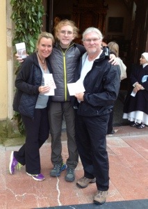 Today was amazing… Mike got some work done again today with his project here this morning.. Has more meetings later: first phase finished! By afternoon we headed to a festival and then on for a truly unforgettable afternoon with family and friends in the mountains surrounding oviedo. The meal was traditional foods of bean soups, vegetable stew, homemade breads, goat( yes! And it was amazing!) beef, potatoes, rice pudding, various pastries, and local wines. The setting was surreal and the Spanish chatter and interpretations abundant! What an amazing send off for our journey! Thank you! We got back in the city in time to have our pilgrim credentials stamped at the cathedral so we start with a blessing in the morning and begin walking. First destination.., Grado… Approx 18 miles!
