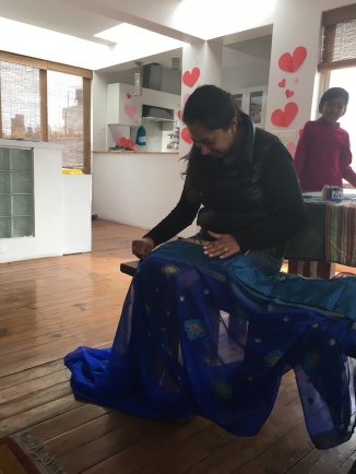 Today is a Hindi Holiday and my sweet friend Mala spent time helping me purchase a sari. It was such a fun experience, so very different. You go sit and they bring beautiful Saris out to view. Men are the salesmen. If you want to try one they use a belt around your waist and then there is the art of wrapping and folding and tucking. After you choose. different shop for matching petticoat and weighted strip for the sari. Next stop a shop for a ready made under blouse. All done!